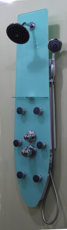 Medida: 130x30 cm. Material: cristal templado. Mango de ducha y soporte en ABS.