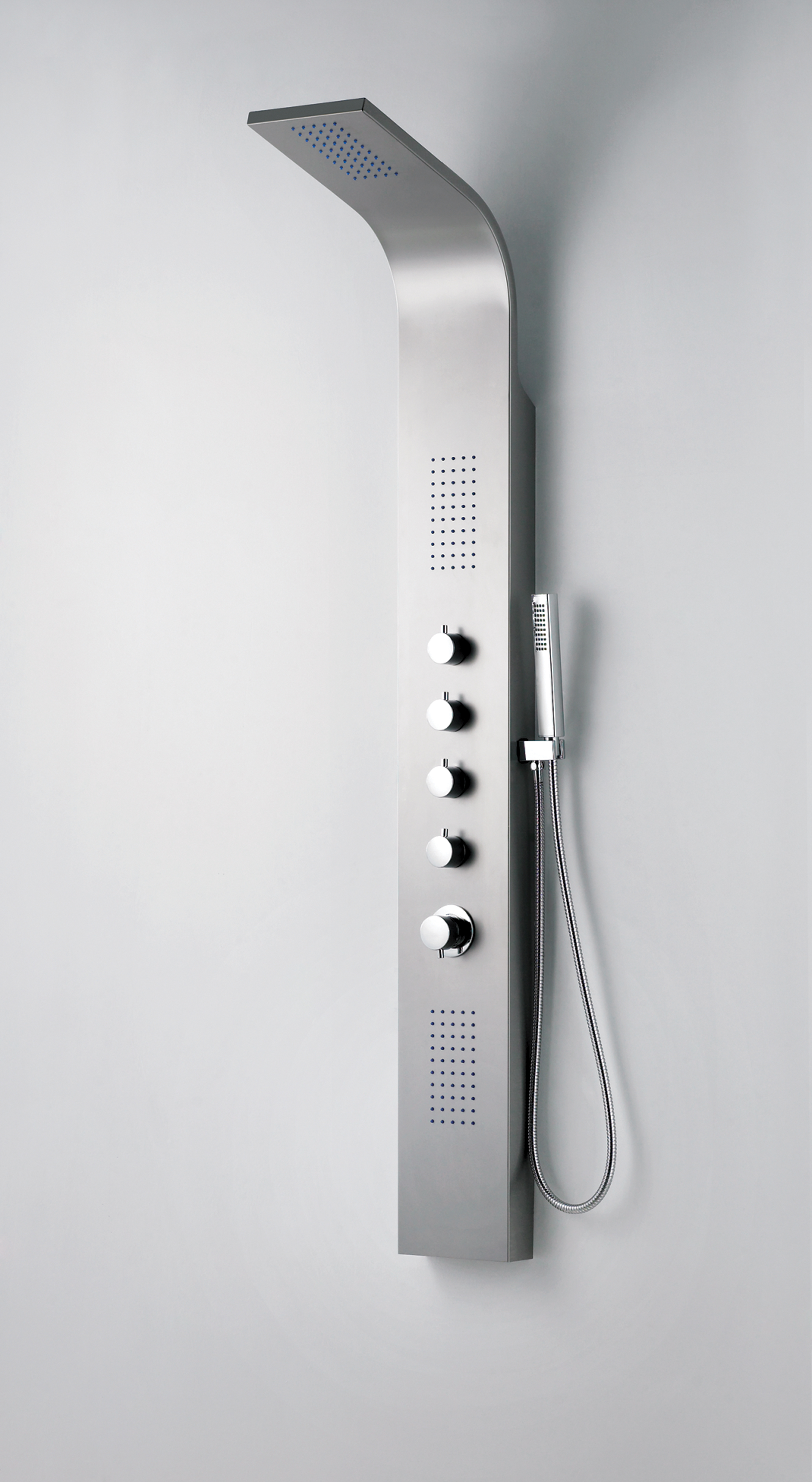 Mango de ducha y soporte en ABS. Posiciones: cascada, lluvia, 2 jets y mango de ducha.