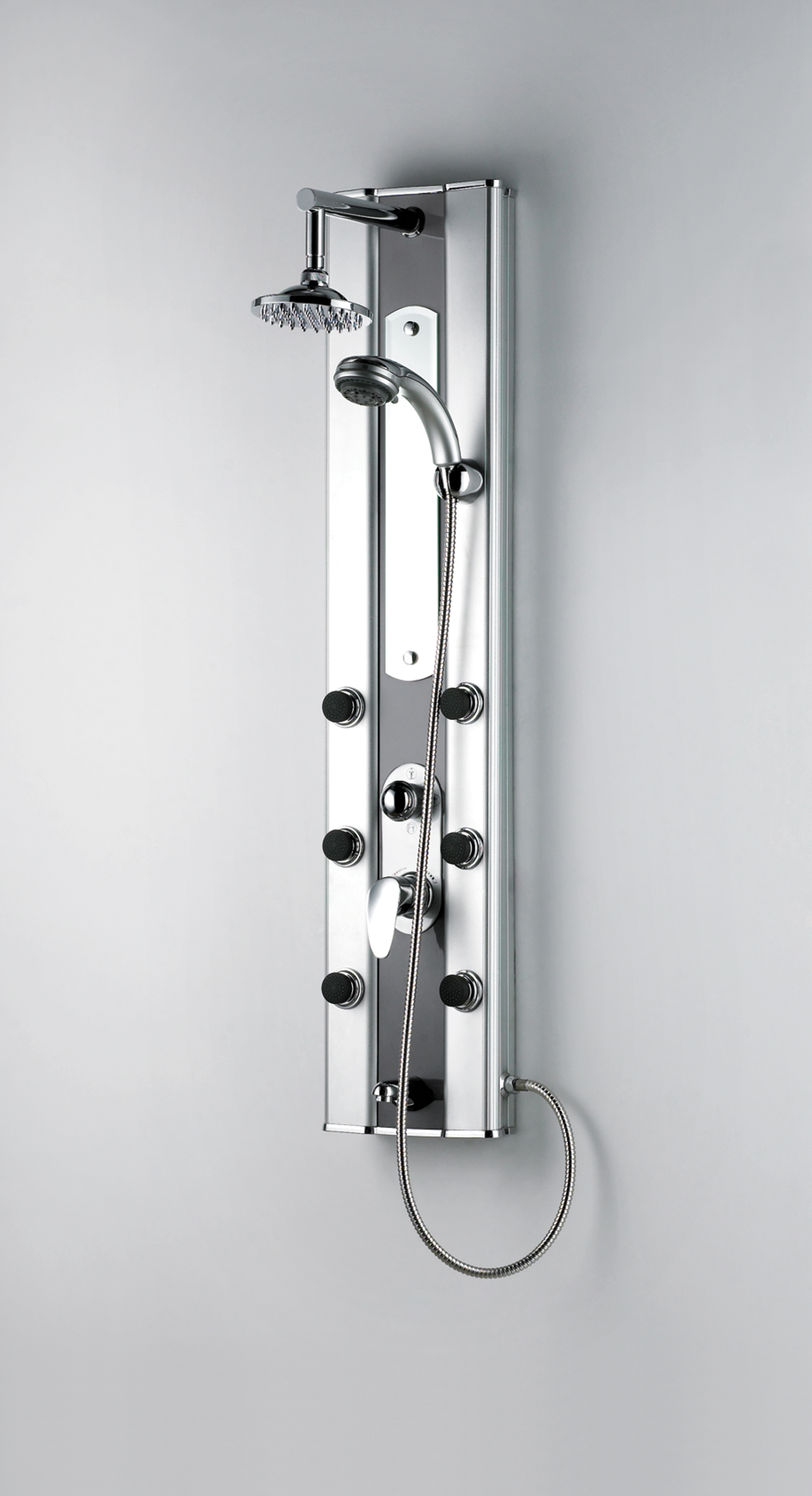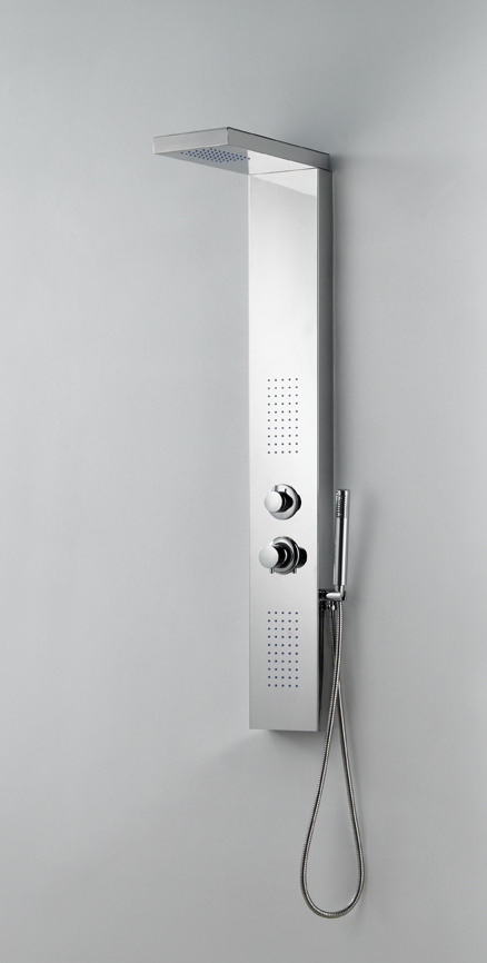 Posiciones: rociador orientable, 6 jets orientables y mango de ducha. Incluye: espejo central.