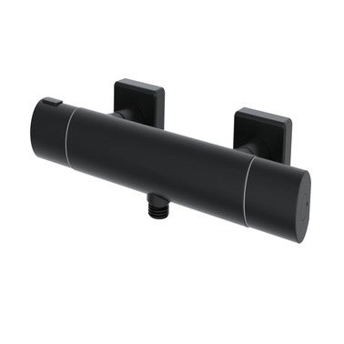 Cuerpo de latón. Discos cerámicos. Distancia entre eje: 150 ± 15 mm. Sistema de bloqueo de seguridad a 38ºC. Tipo de acabado: color negro. Incluye: embellecedores y excéntricas de conexión.